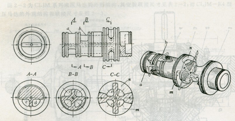 CLJM系列液壓馬達的工作原理可通過圖2-4所示傳統(tǒng)“斯達法”馬達的構(gòu)造(同于國產(chǎn)JMD型)予以認識。