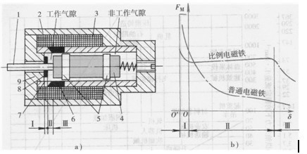 a)普通比例電磁鐵控制b)帶位移反饋比例電磁鐵控制
