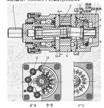 ①軸配流的擺線馬達(dá)軸配流具有結(jié)構(gòu)簡單、外形尺寸小,對油液過濾精度要求不高的特點(diǎn)。軸配流的擺線馬達(dá)可分為配流軸配流和配流套配流兩種。
