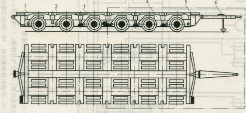 【 圖1 重型多軸全掛車的結(jié)構(gòu)示意圖】