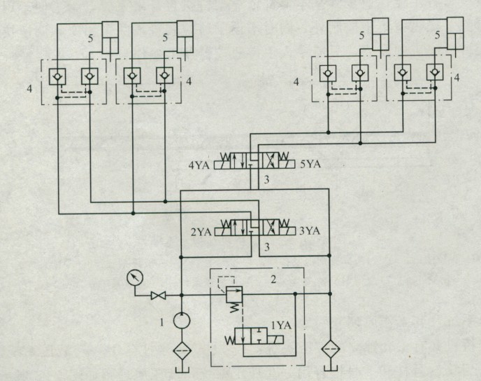 3)該架橋機的3套液壓系統均采用電磁換向閥、雙向液壓鎖、同步閥控制回路。