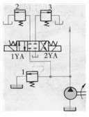 l、2、3、4-單向閥5-電磁換向閥    1-溢流閻2-=位二通電磁閥