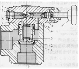 5-先導(dǎo)閥彈簧6-調(diào)壓手輪7-螺堵