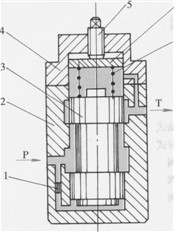 1-主閥2一主閥彈簧3-先導(dǎo)閥4-調(diào)壓彈簧5-阻尼孔
