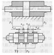 圖6—40c為四邊滑閥控制式,它有四個控制邊。xs1和xs2是控制壓力油進入液壓缸左、右油腔的,xs3和xs4是控制左、右油腔通向油箱的。當滑閥移動時,xs1和xs4增大,xs1和xs4減小,或相反,這樣就控制了進入液壓缸左、右腔的油液壓力和流量,從而控制了液壓缸的運動速度和方向。
