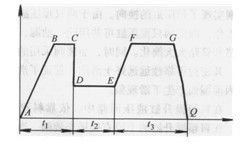 SY型熱壓機液壓系統三段加壓的壓力一時間特性曲線見圖4.3-8,圖中tl為排水時間,t2為干燥時間,t3為塑化時間。