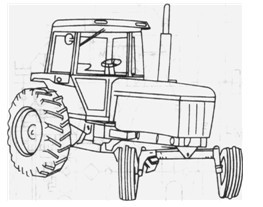 農(nóng)用拖拉機(jī)與牽引或懸掛式農(nóng)機(jī)具配套可完成耕地、整地、播種、施肥、植保等多種作業(yè)。農(nóng)用迪爾4450拖拉機(jī),其外型如圖4 .1-1所示。