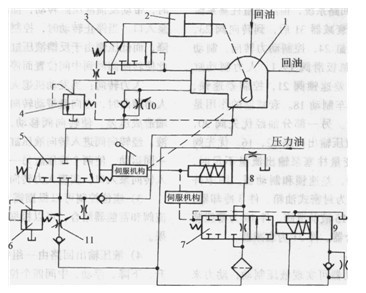 7-液壓負(fù)荷控制閥。8-液壓助力缸9-減震阻尼裝置10-下降速度調(diào)節(jié)閥 11-流量控制閥