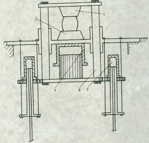 鍛機缸壓 鍛壓終了時,主液壓缸5處于高壓狀態(tài),為了防止沖擊,鍛壓回程前必須緩慢卸壓。這時橋臂1、3、4液阻為無限大,而橋臂2液阻必須處于高阻值狀態(tài)。為了提高生產(chǎn)率,在不產(chǎn)生沖擊的條件下應(yīng)使卸壓過程盡可能縮短,因而采用了兩段卸壓過程。這一功能是由可變液阻2.2、插裝閥2.3和液控換向閥2.4共同完成的。在高壓卸壓狀態(tài)時,2.4使2.3關(guān)閉,插裝閥2.1上腔的壓力油只能經(jīng)2.2流出,使2.1緩慢開啟以便液壓缸5緩慢卸壓;當(dāng)壓力低到一定值后,2.4使2.3開起,液阻2.2被短路,結(jié)果插裝閥2.1快速開啟,加快卸壓過程。