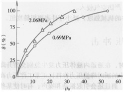 石油基液壓油在靜止狀態下空氣的溶解度與時間的關系如圖3-37所示,它反映了溶解