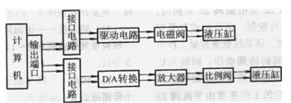 林木球果采集機器人屬示教再現型機器人。它的移動機構采用J-50拖拉機。它的機械手為5個自由度全液壓驅動的機械手,由計算機與電液比例調速閥進行電液比例控制。機械手電液比例控制系統工作原理如圖4.2-8所示。