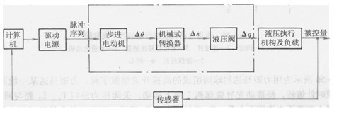 增量式數字閥控制的電液系統框圖如圖6-58所示。由計算機發出需要的脈沖序列,經驅動電源放大后使步進動機按信號動作,步進電動機每得到一個脈沖后便沿控制信號給定方向轉一步距角。步進電動機轉動時,帶動凸輪、螺紋或齒輪齒條等機構將轉角AO轉換成直線位移Ax,從而帶動閥心或擋板等移動。按步進電動機原有位置和實際轉動的步數,得到數字閥的開度,計算機可因此控制液壓缸按需要規律運動。
