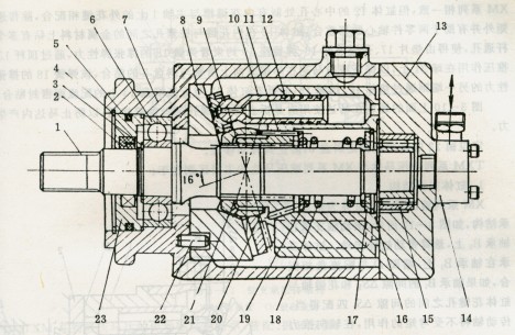 TXM系列液壓馬達(dá)依靠穿越缸體孔道中的推桿,兩端分別直接作用在球鉸和缸體上,結(jié)構(gòu)更為合理,僅用圖3 -10中的墊片17即可調(diào)整預(yù)緊力,操作便利、可靠。