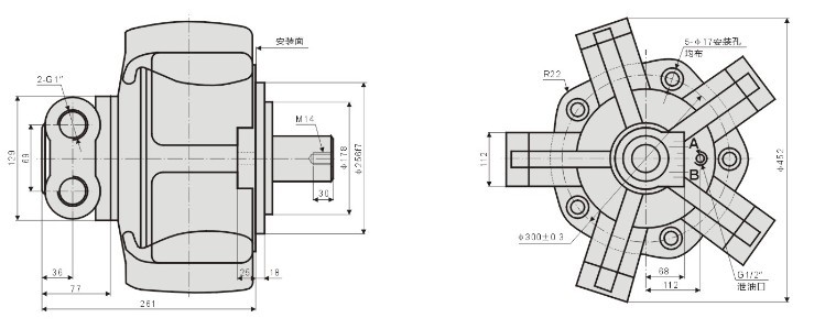 YLM11-700~1300外五星液壓馬達安裝聯接尺寸圖