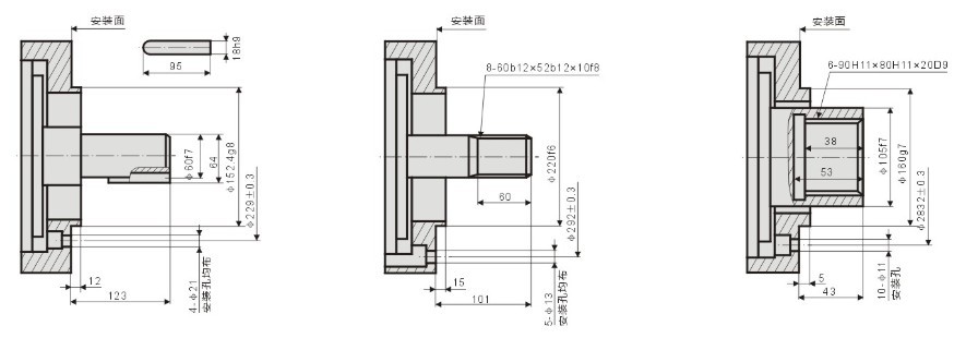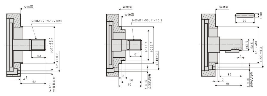標準外花鍵:YLM11-** 標準平鍵:YLM11-**B 標準內花鍵:YLM11-**I