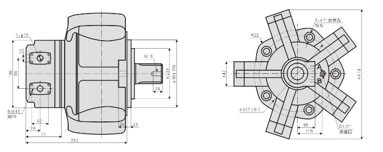 分類:YLM系列曲軸連桿式低速大轉矩液壓馬達(外五星馬達)