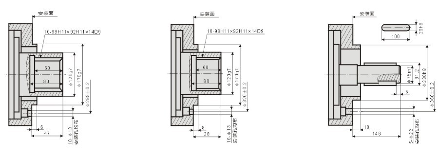 YLM16-1400~3000系列外五星液壓馬達安裝尺寸
